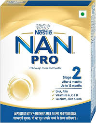 Nestlé NAN Pro 2 is a follow-up formula intended for infants after 6 months up to 12 months of age as part of a weaning diet. It provides DHA and ARA along with vitamins, calcium, iron and zinc that help support normal growth, brain development and immune function. This product should be used as part of a diversified diet and prepared according to label instructions.