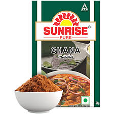Sunrise Pure Chana Masala is a traditional blend of spices specially prepared for cooking chickpeas and chana-based dishes. It adds rich taste, strong aroma, and authentic Punjabi-style flavour.