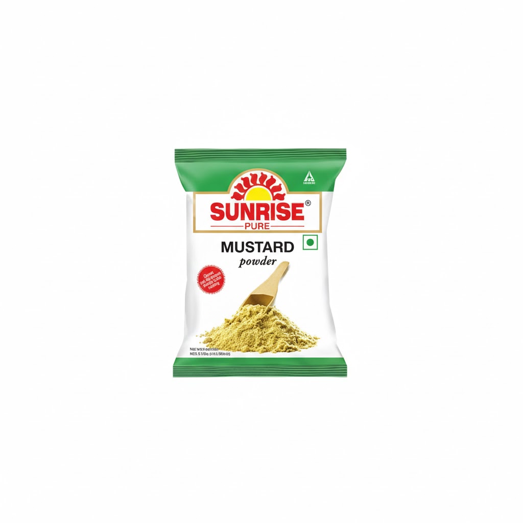 Sunrise Pure Mustard Powder is prepared from carefully selected, high-quality mustard seeds that are cleaned, dried, and finely ground to retain their natural pungency, aroma, and flavour. This mustard powder adds a sharp, authentic kick to traditional Indian dishes such as shorshe bata, mustard gravies, pickles, marinades, and spice blends. Its fine texture ensures smooth mixing and even flavour distribution in cooking. Free from artificial colours and additives, it delivers pure mustard strength and natural oil content for rich taste and freshness. We source fresh and genuine Sunrise products from trusted suppliers to ensure consistent quality, purity, and superior freshness in every pack, making it a reliable choice for everyday cooking as well as special recipes.