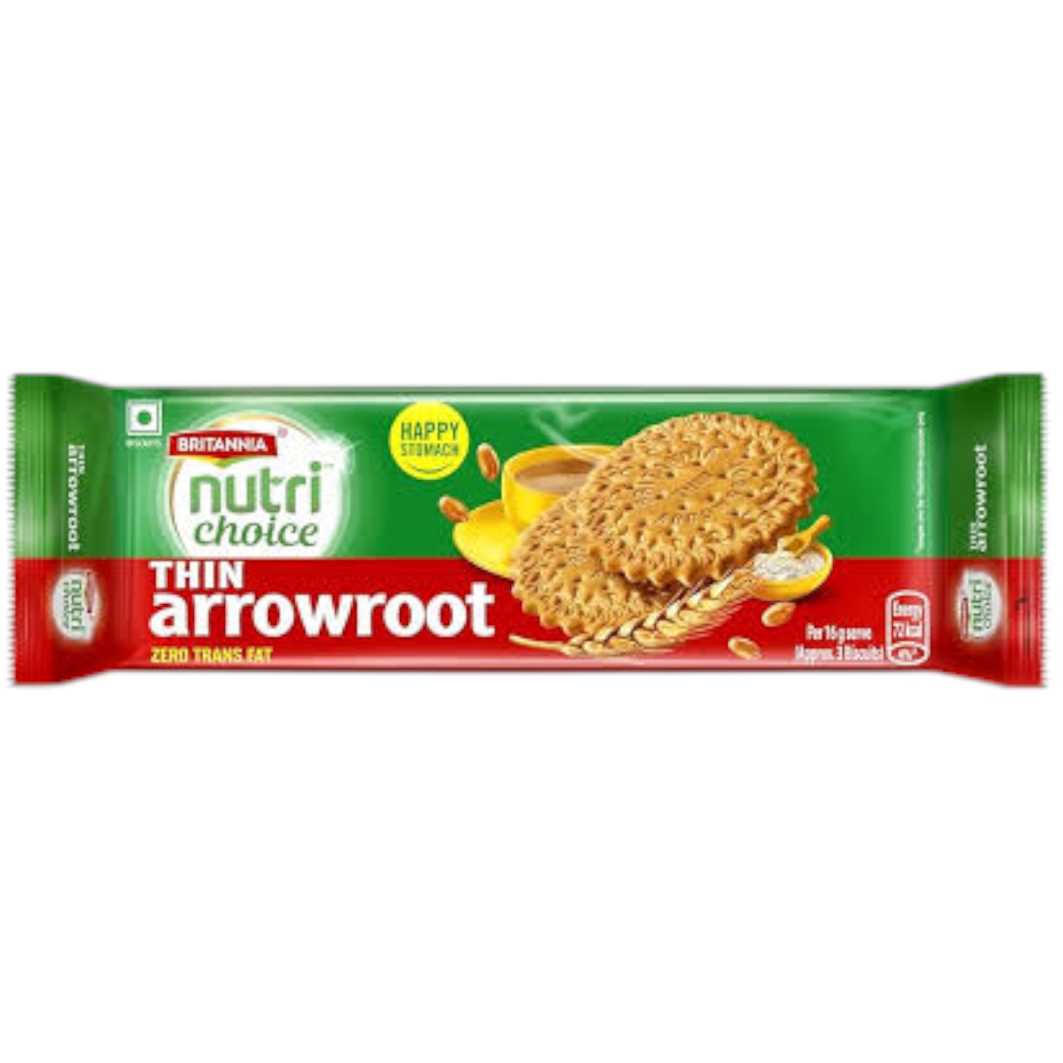 Britannia Nutri Choice Thin Arrowroot Biscuits are light, crisp biscuits made with arrowroot flour and quality ingredients, offering a wholesome snacking option with minimal fat. They provide a subtly sweet taste and airy texture, making them suitable for tea-time, snacks between meals, or paired with milk and tea. These biscuits are designed to offer better digestive comfort and light energy, as arrowroot is known for being easy on the stomach. Carefully baked and hygienically packed, they deliver consistent quality, freshness, and a crunchy bite every time.
