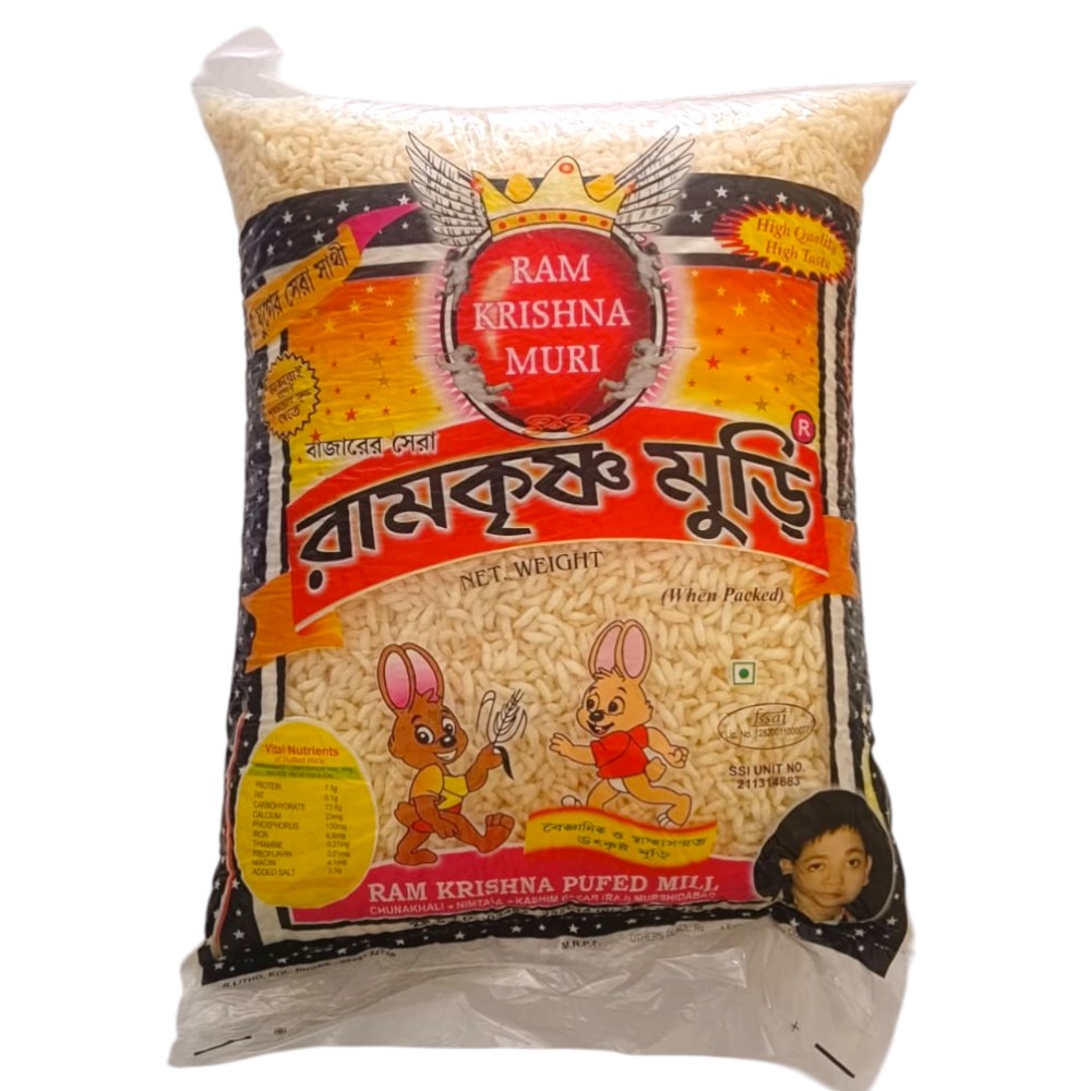 Ramkrishna Muri is a high-quality puffed rice known for its uniform size, crisp texture, and clean taste. Widely used in homemade snacks, it absorbs flavours well when mixed with spices, oil, onions, and chutneys. Carefully packed to retain freshness, it is a staple ingredient in many Indian households for daily snacking needs.
