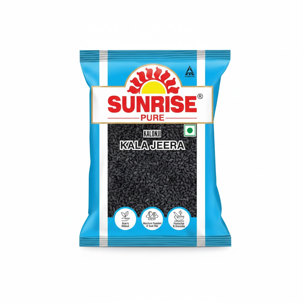 Sunrise Pure Kala Jeera is a fragrant spice used in biryani, pulao, and curries. It has a slightly sweet and earthy aroma that enhances rice and gravy dishes.