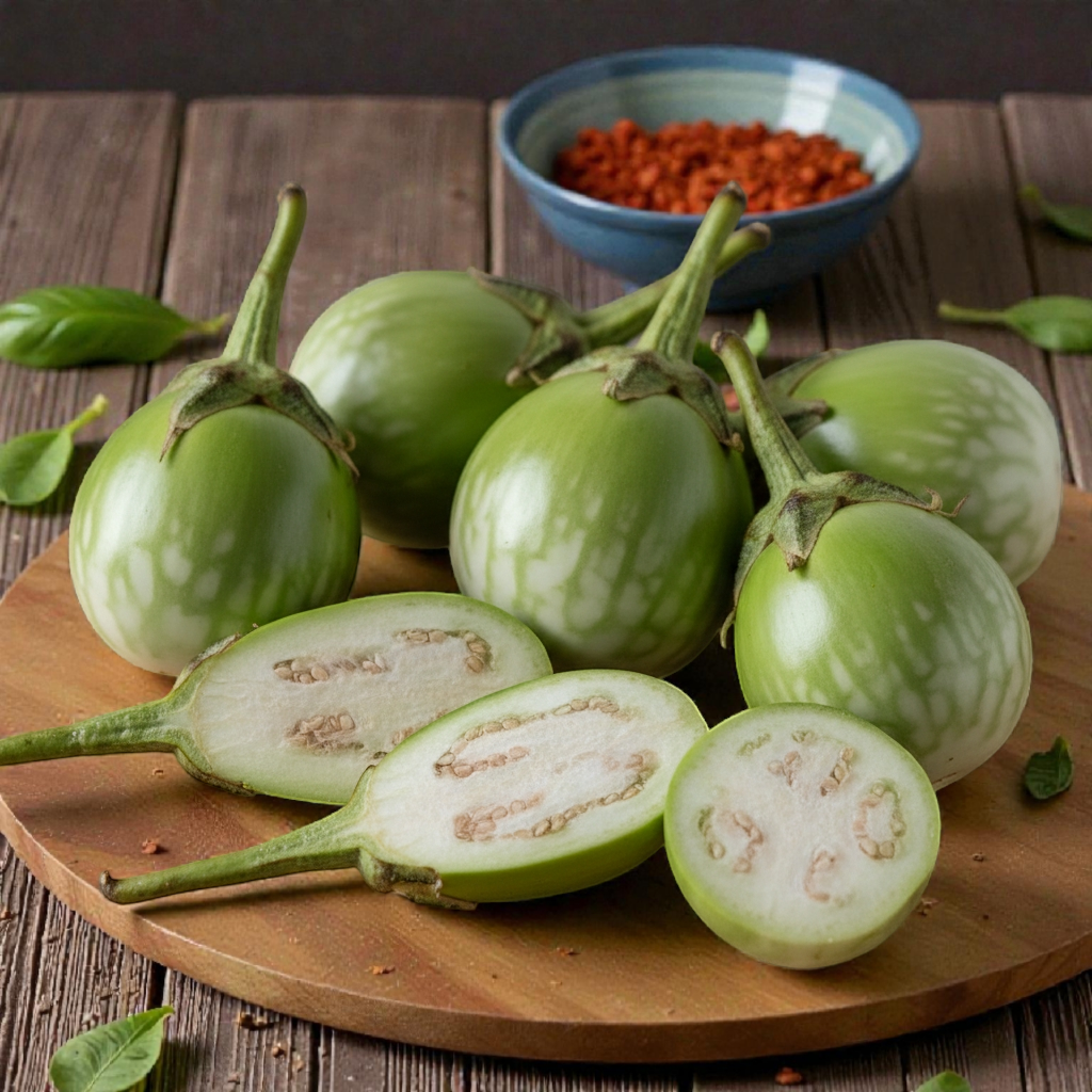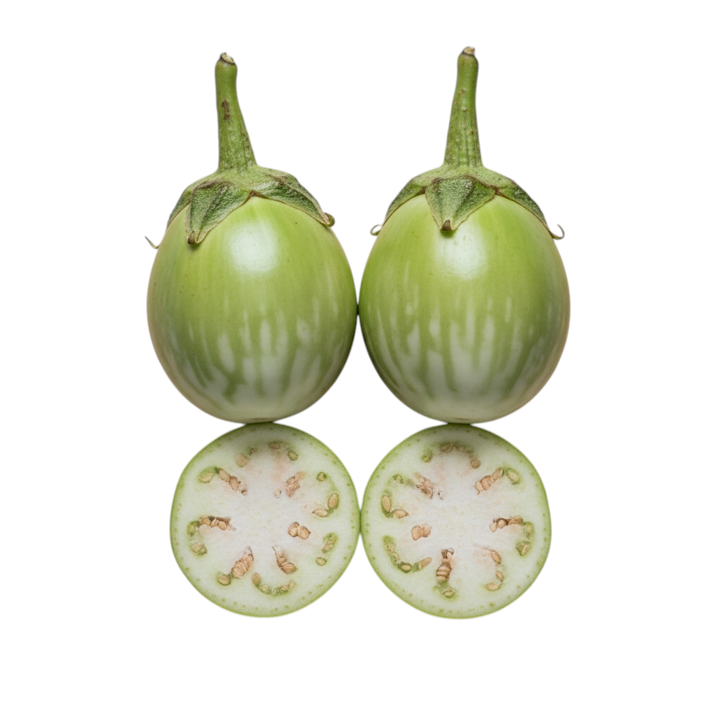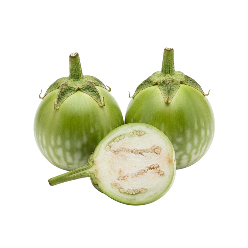 Details : Fresh Green Brinjal (Begun) with smooth green skin and tender flesh, ideal for bhaja, curry, stuffed dishes, and everyday home cooking. Carefully sourced from farmers to ensure freshness and good quality.