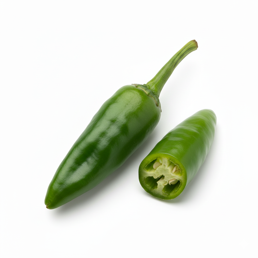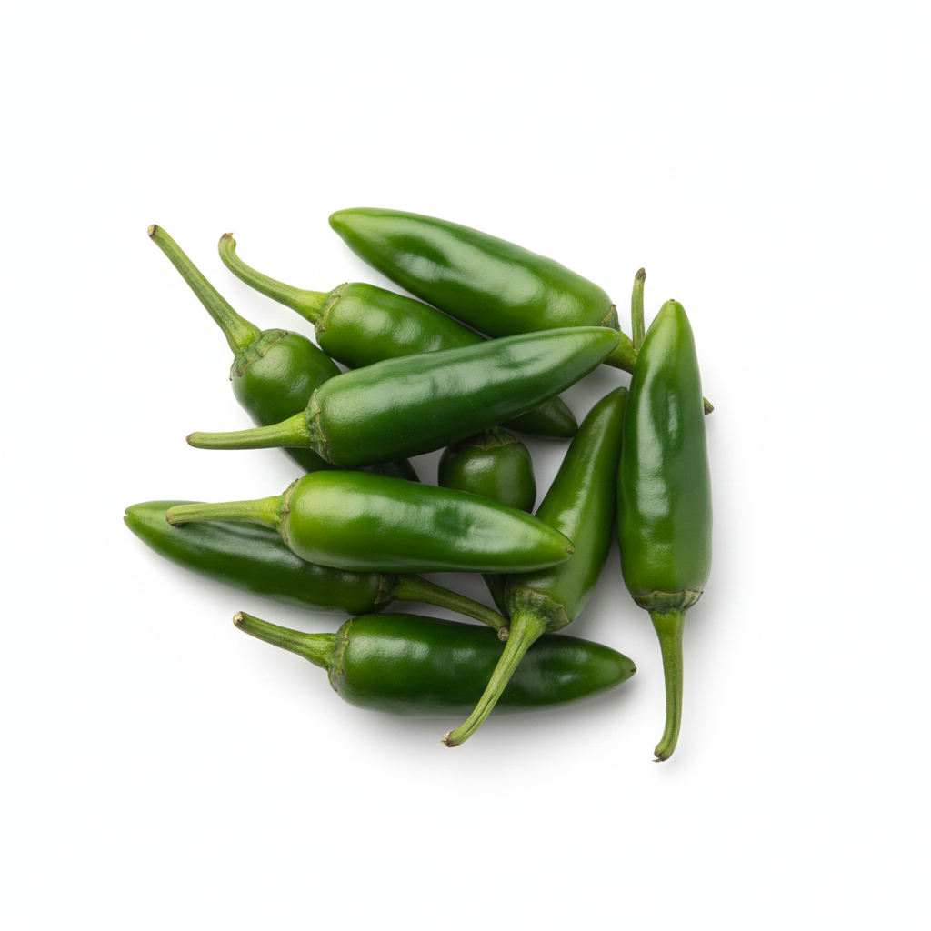 Details : Fresh Bullet Green Chilli (Bullet Lanka) with thick flesh and strong spicy flavour, ideal for bhaja, curries, chutneys, and everyday cooking. Carefully sourced from farmers to ensure freshness and good quality.